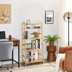Costway 2 PCS 5-Tier Bamboo Ladder Shelf Wall-Leaning Display Bookcase Storage Rack