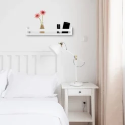 Modest and functional, the 18″ Wall Mount Decorative Spice / Home Decor Organizer Rack Shelf in White by Danya B. offers a beautiful balance between form and function with its contemporary no-frills design and clean lines. Featuring a restrained look with its lack of adornments, this modern utility shelf and spice rack is crafted from durable wood while wrapped in gorgeous white finish. With enough storage space for your personal healthcare products, spices, or even tiny vases of foliage, this chic utility shelf is perfect for hanging on kitchen or bathroom to save on countertop space!