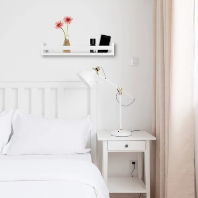 - This modern utility shelf and spice rack is crafted from durable wood while wrapped in gorgeous white finish