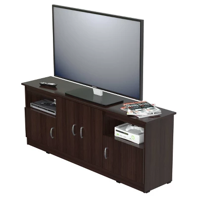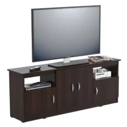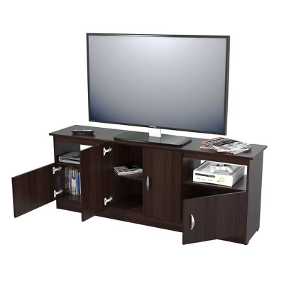 - TV Stand by Inval finished in a rich “Espresso” laminates in durable melamine which is stain, heat and scratch resistant.