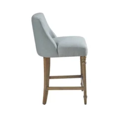 Elevate the look of your dining space with the Martha Stewart Delaney 25″ Upholstered Counter Stool. Flaunting an elegant silhouette, this counter stool features an upholstered seat and back that contrasts the base, for a chic transitional look. The solid wood turned legs add a sophisticated touch to the design, while the metal kickplate on the footrest protects against every day wear and tear. This upholstered counter stool brings a perfect blend of style and comfort to your dining room. Assembly is required and a tool is included. 1 Counter Stool 20″W x 23″D x 35″H