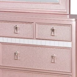 Add excitement to your bedroom with this contemporary two-piece silver vanity set. It’s crafted with a tri-fold mirror and an LED frame, while this piece is upholstered in faux leather with a crocodile skin texture. Find seven drawers with sleek bar pulls for storage, along with a coordinating upholstered silver stool with and tapered legs.