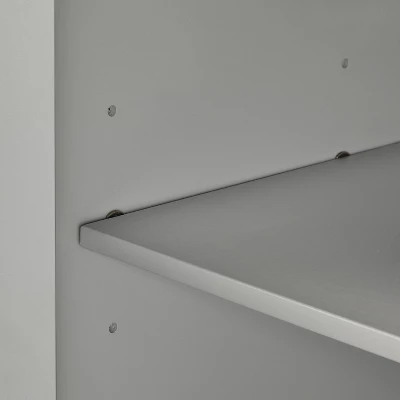- Each cabinet has an adjustable and removable shelf with a 15lb weight limit per shelf