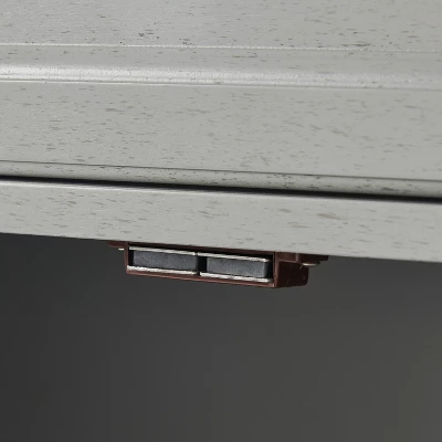 - The sideboard has two large cabinets with double doors and magnetic closures