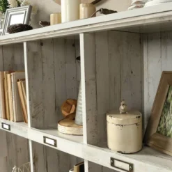 Organize your reading materials and create some extra storage space in your home with this Barrister Lane Bookcase from Sauder. Featuring 10 spacious cubbyholes with a large display area, this large square bookshelf comes with ample space to organize, store and display all your home essentials with ease, and individual ID label tags help you find items faster while keeping everything better organized. This open storage cabinet comes with a warm and weathered finish to tie together your farmhouse-inspired decor.