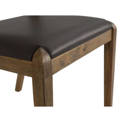 Create special memories with your closest friends and family invited to dinner and the Rasmus 6 Piece Dining Set, Table + 1 Bench + 2 Side Chairs + 2 Armchairs at center stage. This complete dining set comfortably seats a family of six, with room to spare. You’ll get the dining table with built-in extension leaf plus one dining bench, two arm chairs, and two side chairs. With the extension leaf in place, the table can fit up to eight people at one time. All pieces are constructed from solid Acacia wood which undergoes a multistep wire-brush process to leave behind that distinctive Chestnut finish. The side chairs are then lightly padded and upholstered with faux leather polyurethane. Additional seating configurations are also available, so you can customize your dining room to match your family’s needs. Simple assembly is required upon delivery, however the tools and hardware are included for convenience.