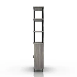 A precisely structured bookcase that streamlines your living room with a mixed-materials, industrial aesthetic. It’s crafted with a steel, openwork top frame in a smooth black finish, featuring engineered wood shelves. drawers and cabinet. We love the X-shaped support that bolsters the modern, airy design that keeps your space feeling spacious.