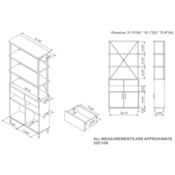 - 73.6 in. H x 31.5 in. W x 12.1 in. D