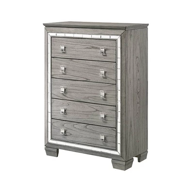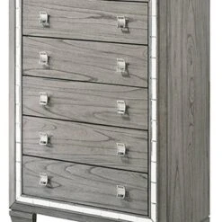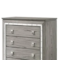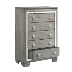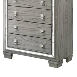If you are looking for nobility with a touch of modern sophistication, the Antares bedroom collection has it. From the upholstered headboard with beveled mirror trim accented by led lighting to the light oak finished wood construction, this set is magnificent in all details. It is beautifully complemented by matching case goods with wooden block legs, felt-lined top-drawers, and English dovetail throughout as well as crystal acrylic knobs. The Antares collection allows the right level of splendor without pretentiousness.