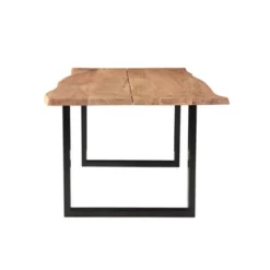 Acacia Butterfly Live Edge wood is a naturally resilient material with Butterfly. It doesn’t get scratched easily and is water-resistant so it won’t warp easily. The wood is also naturally anti-bacterial and resistant to fungus, which makes it ideal for dining tables. Our Athea Acacia wood table has a beautiful dark walnut finish with a brass iron legs. It looks and feels both sturdy as well as luxurious.