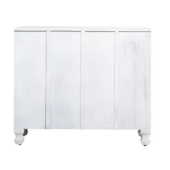 Versatility and aesthetic make for an excellent furnishing. This white oak storage cabinet is a modern farmhouse design that fits in almost any setting from the entryway or mudroom to the laundry room or bathroom. It lends three open shelves and two more compartments behind the classic shutter doors.