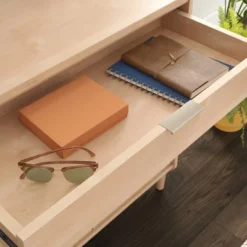 For a convenient storage space addition to any spot in your home, look no further than the 2-door base cabinet from the Clifford Place collection. This base storage cabinet features a spacious drawer that opens and closes on full extension slides. This easy access drawer makes the perfect spot to store miscellaneous papers, your collection of notepads, phone chargers, your planner, and more. Behind the double doors of this library storage cabinet is a hidden area that includes a large adjustable shelf to accommodate all your additional stow-away needs. Use the adjustable shelf to customize your library cabinet to your specific demands. A grommet hole and pass-through for cord management keeps clutter at bay. Finished on all sides in a Natural Maple and accented with solid wood feet, this 2-door storage cabinet gives your home office or workspace a splash of style with the storage space and organization you have been craving.