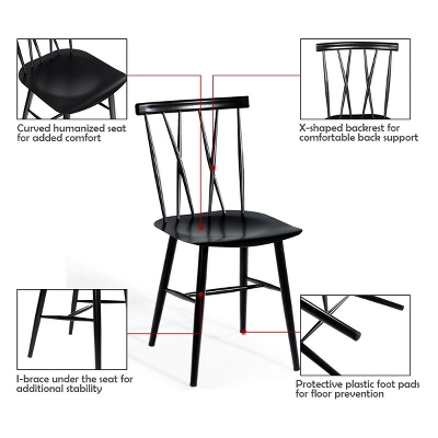 These black steel chairs afford you the comfortable, relaxed feeling for a multitude of decor choices. Made of superior steel, these chairs, with slat back and seat, feature heavy-duty and sturdy enough to hold up to 330lbs of each chair and feature with simple and elegant appearance. And ergonomic backrest design provides support to your back and reduces muscle tension and stress. In addition, this chair includes plastic feet pads to protect your flooring and offer stability.Therefore, whether you’re using this chair for your kitchen, patio or bistro, it’s sure to liven up your decor. Now don’t hesitate to get set of 2 dining chairs to decor and use anywhere you need them!