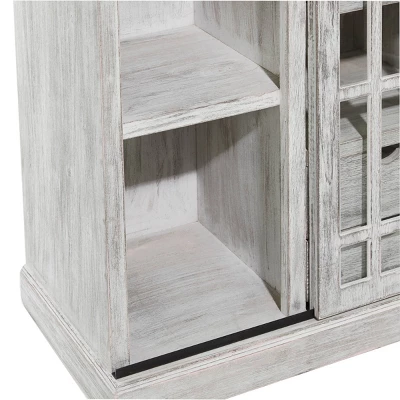 This sweet & charming wooden cabinet is ideal for country cottage, rustic, and farmhouse themed home interiors. A practical yet stylish upgrade that instantly elevate the look of your room. Maintain a clutter free zone and stay organize with this chic cabinet. This farmhouse accent cabinet features 2 drawers that can hold up to 25 lbs. Suitable for indoor use only. Maximum weight limit is 100 lbs., each drawer can hold up to 25 lbs., each shelf can hold up to 30 lbs. A rectangular cabinet featuring 4 separate shelves with weight capacity of 30 lbs. Farmhouse-themed style.