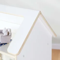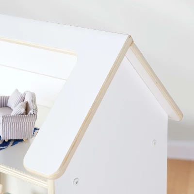 Guidecraft’s EdQ collection satisfies storage and organizational needs in classrooms, homeschool environments and kids’ play areas. The versatile, attractive furniture pieces in this complete collection provide opportunities for various easy configurations in any spaces where children learn and play. The EdQ Dollhouse Bookcase is the perfect playful and practical storage unit. Window and door cutouts, a sloped semi-open roof and accessible shelves with a finished back provide the perfect setting for dramatic play using dolls and stuffed animals. Wide shelves and compartments on the lowest level provide storage for learning materials, books, toys and special treasures.
