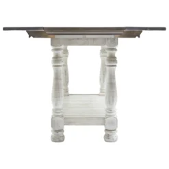 - Two-tone distressed finish: weathered gray top; vintage white base