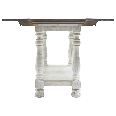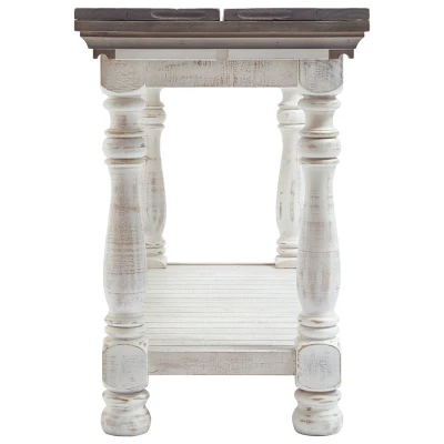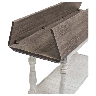Calling all fans of exceptionally functional furniture. You’re sure to flip for this. With its richly rustic finish and textural mix, this flip top sofa table goes to town on bygone beauty. Distressed two-tone treatment blends a weathered gray with vintage white for an utterly charming effect. Expecting company? Simply open the flip top panels to instantly create additional dining space. Stylish and affordable furniture and accessories are more than a dream. For more than 70 years, Ashley Furniture has furnished millions of homes, one beautiful piece at a time. We design and build furniture, then test it for lasting quality and functionality—so you’ll love the look and the price. Signature Design by Ashley is a registered trademark of Ashley Furniture Industries, Inc.
