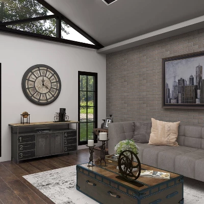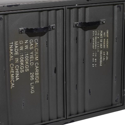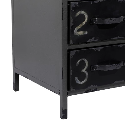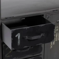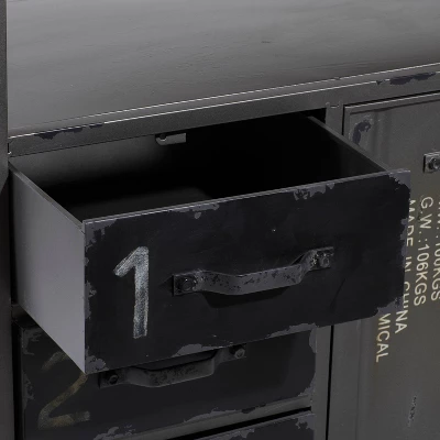 Bring a finishing touch to your home with an inviting appeal with this expertly crafted buffet sideboard. A stylish way to keep you organize and your belongings safe and protected. The drawers of this distressed cabinet are numbered and the cabinet door is spray-painted with labels making it a suitable addition to industrial interiors. This item comes with mounting hardware to prevent tipping. 1 door cabinet measures 25″L x 15″W x 18″ H. This item ships in 1 carton. 6 pull-out drawers measures 12″L x 15″ W x 5″ H. Storage with tabletop, open shelf, large cabinet, 6 drawers. Suitable for indoor use only. Maximum weight limit for shelf is 30 lbs.. This item has 1 shelf. Industrial theme.