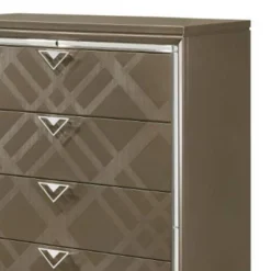 Keep your jewelry organized and tucked away with the radiant Gold Jewelry Armoire from Acme Furniture. This wood armoire features a subtle gold finish, adding a touch of shine to your space, whether it’s in your bedroom, closet or bathroom. Two doors along each side swing open to reveal hooks to hold necklaces and prevent them from tangling. Six drawers are perfect for stashing scarves, belts and more. Lift up the top to reveal a mirror and more storage space with rolls for rings, and other compartments for bracelets.