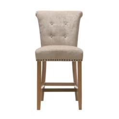 Elegant nail heads add an extra touch of dignified style to this roll back button tufted Lorsted Counter Stool. Assembly required.