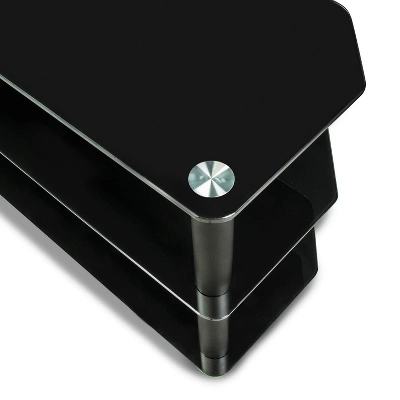 The MI-863 extra-large entertainment center creates a spacious area for your TV and media equipment. This shelf-mount stand combination allows you to achieve a sleek “on the wall” look without requiring drilling or wall marring. The spacious shelving design is built for a classy, contemporary appearance. The black silk screen and powder-coated aluminum steel structure provides a secure, stable, and sturdy construction. The open space design helps keep your AV equipment operating at ideal temperatures.All necessary hardware and installation guides included.