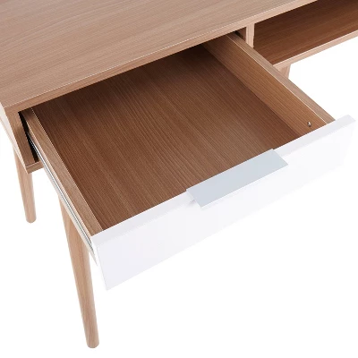Add casual style to any office space with the Pebble Double Desk by LumiSource. The Pebble Desk’s simplistic design is accentuated by a large rectangular wood top, a drawer, and an open shelf, perfect for storing all of your supplies! This desk will be right at home in a home office, a teenagers bedroom, or a dorm.