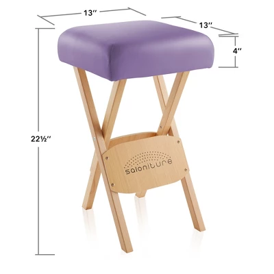 Available in colors matching Saloniture massage tables and bolsters, provides support and comfort for reiki, massage therapy and other treatments. The Saloniture wood folding massage stool with carrying case features a padded seat composed of a plush, 2″ thick layer of quality eco-friendly, high-density foam providing ultimate durability and comfort. Lightweight yet sturdy construction in a streamlined design makes setup and breakdown a breeze, featuring a cushioned handle on the seat. The seat cover is made from a soft, highly durable vegan-friendly synthetic leather. The Saloniture wood folding massage stool with carrying case features a padded seat composed of plush eco-friendly, high-density foam providing ultimate durability and comfort. Lightweight, yet sturdy construction in a streamlined design makes setup and breakdown a breeze, featuring a cushioned handle on the seat. Precision crafted from premium-grade materials the stool features a beechwood base to accommodate a weight capacity of up to 250 lbs. Weighing just 5 pounds, the stool’s compact design folds easily for transportation and storage into the included black nylon carry case with reinforced handles for easy travel. Cushion measurements: 13” x 13” x 4”. Stool height – 22-1/2″. Stool height closed 24-1/2”.