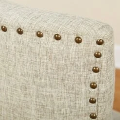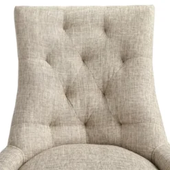 The Ariane (Set of 2) dining chairs by angelo:HOME will bring an upscale look to your dining area. These handsome tailored chairs are constructed of solid rubberwood in a weathered gray finish and upholstered in a neutral light gray linen type fabric. Accented with generously sized nailheads along the outer edge and tufted backs, these chairs will complement any dining room interior.