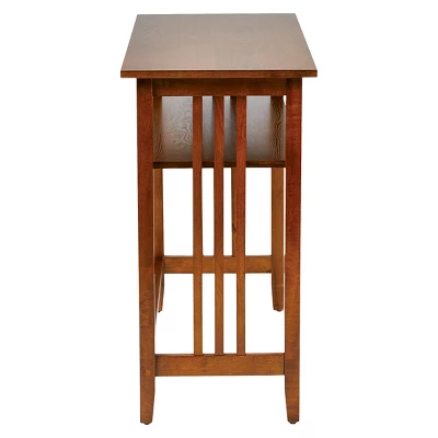 Imagine how impressed your friends will be when they see the new Sierra Mission Foyer Table in the entryway of your home. Certain to proclaim your taste for serious style; this craftsman style furnishing is a winner on so many levels. Envision this mature yet down-home styled table displaying a lighting piece, housing your magazines, or holding your favorite beverage. Boasting a squared off overhang edge with a convenient lower shelf, this medium ash colored end table is both easy to clean and exceptionally durable. Whether you homes style is mature and Transitional, urban and Contemporary, or cultured and Cosmopolitan, the all new Sierra Mission Foyer Table is the perfect style statement for your décor that is as attractive as it is affordable.