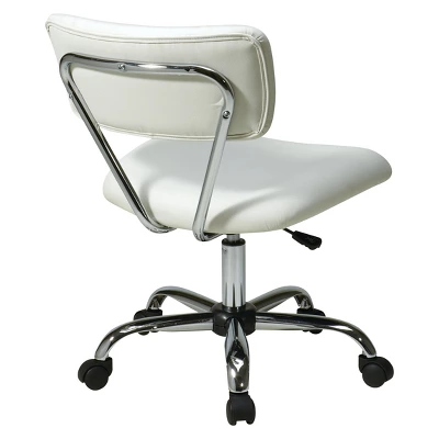 Ideal for a dorm, studio apartment or any room where space is limited, the Ave Six Vista Task Chair is simple in design but extremely practical in execution. A padded vinyl seat and back create a cloud like experience while working on any task before you. If you are craving a more traditional feel, you will love the solid black option, while funky color choices like white and pink allow you to create a statement piece. Don’t be fooled by the size of this compact chair, its heavy-duty chrome base with dual wheel carpet casters make it extremely durable and long lasting. This task chair will become a staple in your home, whether pairing at a desk or in a craft area.