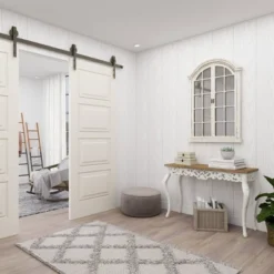 Bring a finishing touch to your home with an inviting appeal with this console table. A sturdy and long lasting construction for a years of enjoyment. Farmhouse wood carved console table will set a great first impression when displayed in entryways under a round wooden mirror. This item ships in 1 carton. Decorative wood carvings. Suitable for indoor use only. Some assembly required. Maximum weight limit is 75 lbs. This is a single white colored entryway table. Farmhouse style.