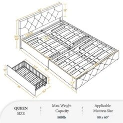 - 【Underbed Storage】 The equipped 4 wire netting drawers are measured 31.5’’L x 19.7’’W x 6’’ H, providing sufficient storage space to accommodate your bedding items and such in order.